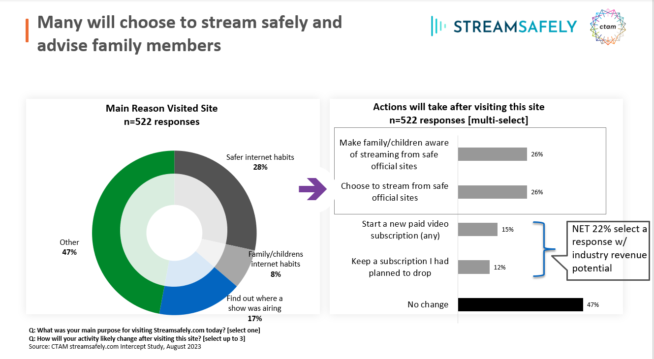 - More than half of visitors intend to take a positive action after visiting StreamSafely